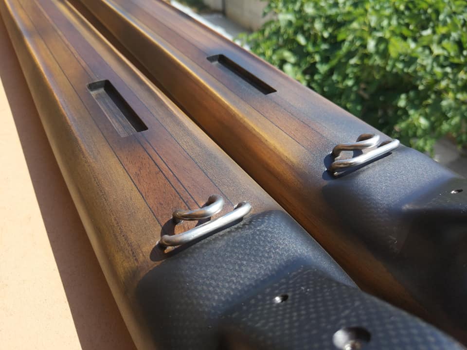 On this finish I regularly use the airbrush to add colored pigments (black color) to add relief to the wood and avoid a too brutal break between the wood and the carbon.